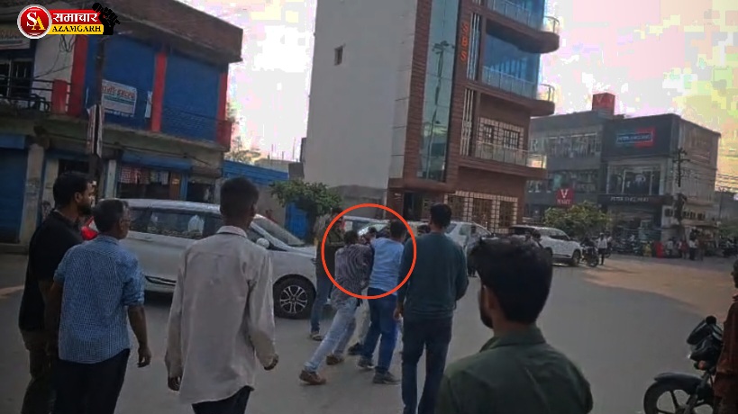 गौरव श्रीवास्तव,आज़मगढ़। नगर के व्यस्त अग्रसेन चौराहे पर दिनदहाड़े हुई मारपीट का वीडियो सोशल मीडिया पर वायरल हुआ है। वीडियो में कुछ युवक एक व्यक्ति को बीच चौराहे पर मारपीट करते नजर आ रहे है। आपको बता दे की वायरल वीडियो शहर कोतवाली क्षेत्र के अग्रसेन चौराहे का बताया जा रहा है, जहां दो युवकों ने एक व्यक्ति के साथ बीच सड़क पर मारपीट की। चौराहे के एक कोने से दूसरे कोने तक झड़प होती रही, इस दौरान एक व्यक्ति बीच-बचाव की कोशिश करता दिखा, लेकिन जब भीड़ जुटने लगी तो आरोपी मौके से फरार हो गए।