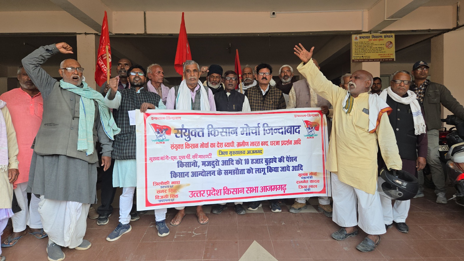 गौरव श्रीवास्तव,आजमगढ़। किसान आंदोलन के पांचवीं वर्षगांठ पर संयुक्त किसान मोर्चा द्वारा बुधवार को राष्ट्रपति को संबोधित नौ सूत्री मांग पत्र जिला प्रशासन को सौंप पूरे कलेक्ट्रेट का घेराव व नारेबाजी किया गया। इस दौरान केंद्र सरकार के नये श्रम कानून को श्रमिक विरोधी बताकर आवाज उठाई गई।किसान सभा उत्तर प्रदेश अध्यक्ष इम्तेयाज बेग ने कहा कि वर्तमान के केंद्र व प्रदेश सरकार द्वारा पूंजीपतियों को लाभ पहुंचाने की गरज से जनता पर मंहगाई थोपा जा रहा है। यह आमजनता नहीं बल्कि पूंजीपतियों सरकार है। मंहगाई पर सरकार का कोई नियंत्रण नहीं रह गया है। जिसके कारण आमजनता परेशान है, ऐसी सरकार को जनहित में कदम उठाने की जरूरत है।किसान सभा के जिलाध्यक्ष त्रिलोकी नाथ व जिला मंत्री गुलाब मौर्य ने बताया कि हमारी नौ सूत्री मांगों में एमएसपी सीटू प्लस 50 प्रतिशत किसानों की फसल का मूल्य निर्धारित करने, दस हजार रूपये बुढ़ापे की पेंशन अनिवार्य करने, किसानो को सभी प्रकार के कर्ज माफ करने की मांग की।वहीं रामनेत यादव ने बताया कि हमारी अन्य मांगों में छुट्टा पशुओं तथा जंगली पशुओं से किसान की फसल बचाने, कृषि के सिंचाई के लिए हर खेत को पानी बिजली का निजीकरण बंद व बढ़ी हुई बिजली बिल वापस लिये जाने, भारतीय बीज को कम्पनियों के हवाले न करने, धान और गन्ना की घटतौली रोके जाने व कृषि लागत घटाये जाना शामिल रहा।ज्ञापन सौंपने वालों में जियालाल, रामनेत यादव, भाकपा जिला सचिव जितेंद्र हरि पाण्डेय वसीर मास्टर, जानकी मौर्य, विजय बहादुर, रामटहल, द्विजराम यादव, दिनेश पाण्डेय, राजेंद्र, अशोक राय, रामअवध यादव आदि शामिल रहे।