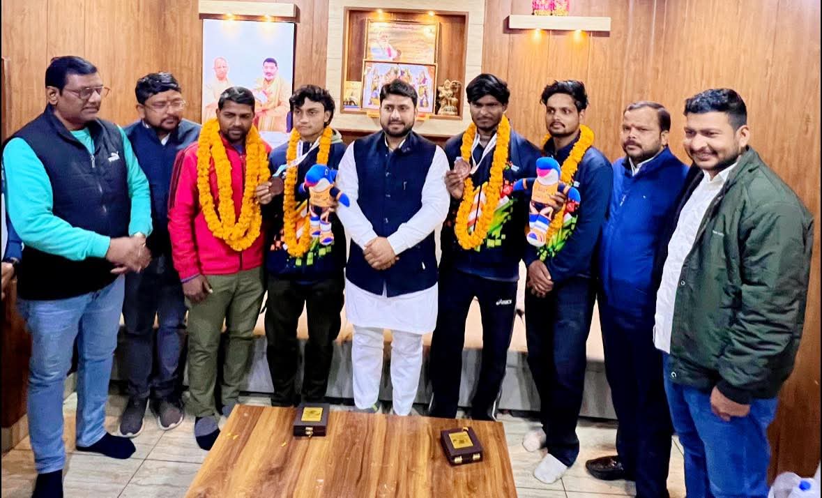 गौरव श्रीवास्तव/अमन गुप्ता, आजमगढ़। भारत सरकार के खेल मंत्रालय के दिशा-निर्देशों पर आयोजित खेलो इंडिया बीच गेम्स–2026 का आयोजन दमन एवं दीव में 5 से 11 जनवरी 2026 तक किया गया। इस प्रतिष्ठित प्रतियोगिता में पेंचक सिलाट खेल में उत्तर प्रदेश टीम से 11 खिलाड़ियों ने हिस्सा लिया, जिनमें से आज़मगढ़ के 4 खिलाड़ियों का चयन हुआ था।प्रतियोगिता में आज़मगढ़ के सूरज यादव और आर्यवीर सिंह ने उत्कृष्ट प्रदर्शन करते हुए कांस्य पदक जीतकर प्रदेश और जिले का नाम रोशन किया। वहीं, अन्य दो खिलाड़ी अनमोल यादव और शैलेन्द्र सोनकर का सफर क्वार्टर फाइनल तक रहा। उत्तर प्रदेश टीम के साथ कोच ज्ञानेंद्र चौहान भी खिलाड़ियों के मार्गदर्शन हेतु उपस्थित रहे।खेलो इंडिया बीच गेम्स में सफलता के बाद आज़मगढ़ आगमन पर पेंचक सिलाट स्पोर्ट्स एसोसिएशन ऑफ उत्तर प्रदेश के महासचिव सूरज प्रकाश श्रीवास्तव ने सिविल लाइन स्थित कैंप कार्यालय में सभी खिलाड़ियों का माल्यार्पण कर एवं मिठाई खिलाकर भव्य स्वागत किया।इस अवसर पर महासचिव सूरज प्रकाश श्रीवास्तव ने कहा कि भारत सरकार द्वारा पेंचक सिलाट को प्राथमिक खेलों की सूची में शामिल किया गया है और उत्तर प्रदेश के खिलाड़ियों ने खेलो इंडिया जैसे राष्ट्रीय मंच पर शानदार प्रदर्शन किया है। उन्होंने सभी खिलाड़ियों को बधाई देते हुए भविष्य में और अधिक पदक जीतकर देश, प्रदेश और जिले का नाम रोशन करने की शुभकामनाएं दीं।उल्लेखनीय है कि खेलो इंडिया बीच गेम्स 2026 में पेंचक सिलाट, कबड्डी, वॉलीबॉल सहित विभिन्न खेलों का आयोजन किया गया था।कार्यक्रम में रजनीश श्रीवास्तव, मयंक श्रीवास्तव, शैलेश प्रजापति, अरविंद चित्रांश, अमन श्रीवास्तव, अभय चौरसिया, धीरज शुक्ला, अभिषेक मौर्या, रितेश श्रीवास्तव सहित कई गणमान्य लोग उपस्थित रहे।