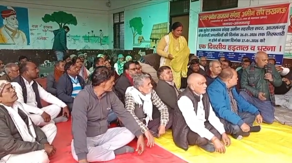 गौरव श्रीवास्तव/अमन गुप्ता,आजमगढ़। सदर तहसील के अमीन सुरेश उपाध्याय की संदिग्ध मौत के मामले में नामजद एफआईआर दर्ज होने के बावजूद अब तक आरोपितों की गिरफ्तारी न होने से आक्रोशित संग्रह अमीनों ने मंगलवार को उत्तर प्रदेश राजस्व संग्रह अमीन संघ आजमगढ़ के बैनर तले तहसील सदर में एक दिवसीय हड़ताल पर रहते हुए धरना दिया। इस दौरान राजस्व संग्रह अमीन संघ के जिला अध्यक्ष दीनदयाल बौद्ध, मंत्री कमलेश प्रजापति, संग्रह अमीन तहसील सदर के अध्यक्ष विपिन कुमार सिंह आदि ने धरने को संबोधित करते हुए कहा कि संग्रह अमीन सुरेश उपाध्याय 17 जनवरी को सुबह 10 बजकर 28 मिनट पर गायब हो गए थे। जिसकी सूचना शासन व प्रशासन को दी गई परंतु प्रशासन की लापरवाही से उक्त अमीन की हत्या कर दी गई । जिसका शव और मोटरसाइकिल 20 जनवरी की शाम 5 बजकर 30 मिनट पर बसपा कार्यालय के पीछे नरौली से बरामद हुआ। मुकदमा दर्ज होने की बावजूद अभी तक आरोपियों की गिरफ्तारी नहीं हो सकी है। संग्रह अमीन संघ ने जल्द से जल्द आरोपियों की गिरफ्तारी की मांग किया। चेतावनी दिया कि जब तक हत्या आरोपियों की गिरफ्तारी नहीं हो जाती है तब तक हमारा आंदोलन चलता रहेगा।