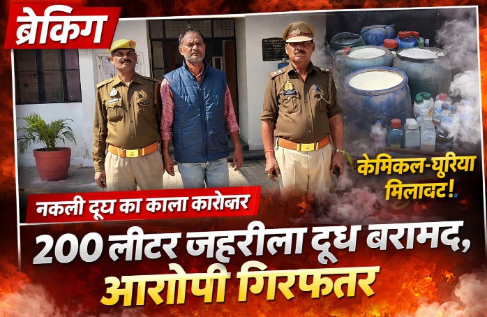 गौरव श्रीवास्तव/अमन गुप्ता,आजमगढ़। जनपद में मिलावटखोरों के खिलाफ बड़ी कार्रवाई करते हुए पुलिस और खाद्य सुरक्षा विभाग की संयुक्त टीम ने नकली दूध बनाने के एक सनसनीखेज गिरोह का पर्दाफाश किया है। देवगांव थाना क्षेत्र के सोफीपुर गांव में घर के अंदर चल रही नकली दूध फैक्ट्री पर ताबड़तोड़ छापेमारी कर टीम ने पूरे इलाके में हड़कंप मचा दिया। छापेमारी के दौरान मौके से करीब 200 लीटर केमिकलयुक्त कृत्रिम दूध बरामद किया गया। इसके साथ ही पुलिस ने यूरिया, सोयाबीन तेल, खतरनाक केमिकल और मिलावट में इस्तेमाल होने वाले उपकरण भी कब्जे में ले लिए। शुरुआती जांच में सामने आया है कि आरोपी टैंकर से असली दूध निकालकर उसमें नकली दूध मिलाकर डेयरियों में सप्लाई कर रहा था, जिससे लोगों की सेहत के साथ बड़ा खिलवाड़ किया जा रहा था। कार्रवाई के दौरान पुलिस ने इस गोरखधंधे के मुख्य आरोपी संतोष कुमार को गिरफ्तार कर लिया है, जबकि मकान मालिक प्रमोद राय मौके से फरार हो गया। पुलिस उसकी गिरफ्तारी के लिए लगातार दबिश दे रही है। आपको बता दे की पुलिस अधिकारियों के मुताबिक, बरामद केमिकलयुक्त दूध का सैंपल जांच के लिए भेज दिया गया है और पूरे नेटवर्क की जांच तेज कर दी गई है। इस कार्रवाई से इलाके में नकली दूध माफियाओं में हड़कंप मचा हुआ है।