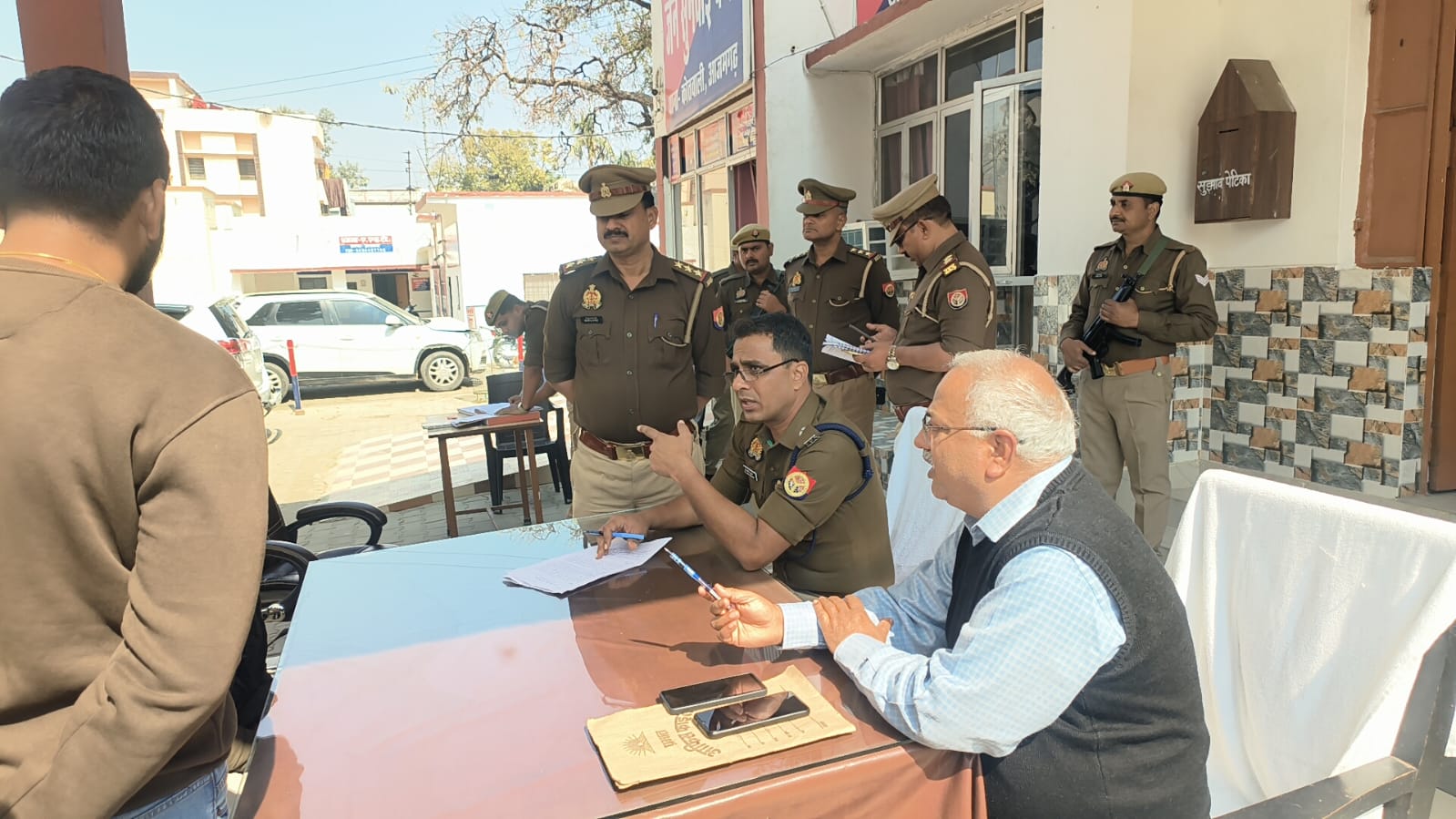 गौरव श्रीवास्तव/अमन गुप्ता,आजमगढ़।थाना कोतवाली में थाना समाधान दिवस का आयोजन किया गया। कार्यक्रम में वरिष्ठ पुलिस अधीक्षक, डॉ. अनिल कुमार व सी.आर.ओ. संजीव ओझा द्वारा स्वयं उपस्थित होकर आमजन की समस्याएँ सुनी गईं तथा संबंधित अधिकारियों को आवश्यक दिशा-निर्देश प्रदान किए गए।थाना कोतवाली पर सभी प्राप्त प्रार्थना पत्रों में से 50 प्रतिशत से अधिक प्रकरणों का मौके पर ही निस्तारण करा दिया गया। शेष प्रार्थना पत्र राजस्व विभाग से संबंधित पाए गए, जिनके त्वरित निस्तारण हेतु पुलिस एवं राजस्व विभाग की संयुक्त टीम को तत्काल मौके पर भेजकर आवश्यक कार्यवाही सुनिश्चित कराई* जा रही है।कार्यक्रम के दौरान जनता की समस्याओं को गंभीरता से सुनकर पारदर्शी एवं त्वरित समाधान की कार्यवाही की गई। पुलिस-प्रशासन द्वारा भविष्य में भी इसी प्रकार जनसामान्य की शिकायतों के त्वरित निस्तारण हेतु प्रतिबद्धता व्यक्त की गई। जनसुनवाई के पश्चात मिशन शक्ति कार्यालय का निरीक्षण किया गया व आवश्यक दिशा निर्देश दिए गए।