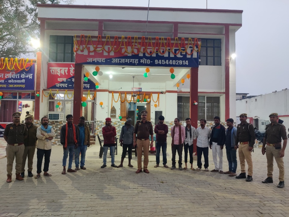 गौरव श्रीवास्तव/अमन गुप्ता,आजमगढ़।जनपद में सार्वजनिक स्थानों पर शराब सेवन के खिलाफ चलाए जा रहे अभियान के तहत थाना कोतवाली पुलिस ने बड़ी कार्रवाई की है। ऑपरेशन “सड़क पर सूरूर” के अंतर्गत बुधवार को सड़क एवं सड़क किनारे सार्वजनिक स्थलों पर शराब पीते पाए गए 45 व्यक्तियों को हिरासत में लेकर उनका चालान किया गया।यह अभियान वरिष्ठ पुलिस अधीक्षक डॉ. अनिल कुमार के निर्देशन में संचालित किया जा रहा है। अभियान की निगरानी अपर पुलिस अधीक्षक नगर मधुवन कुमार सिंह एवं क्षेत्राधिकारी नगर शुभम तोदी द्वारा की जा रही है।पुलिस के अनुसार, 19 फरवरी को थाना कोतवाली क्षेत्र में विशेष चेकिंग अभियान चलाया गया, जिसमें सड़क अथवा सार्वजनिक स्थानों पर शराब का सेवन कर रहे कुल 45 व्यक्तियों को पकड़कर धारा 34 पुलिस एक्ट के तहत चालान किया गया। सभी को भविष्य में इस प्रकार की हरकत न करने की कड़ी चेतावनी भी दी गई।पुलिस प्रशासन ने आम नागरिकों से अपील की है कि वे सार्वजनिक स्थानों पर शराब सेवन या धूम्रपान से बचें। नियमों का उल्लंघन करने वालों के विरुद्ध सख्त कानूनी कार्रवाई की जाएगी।जनपद पुलिस ने स्पष्ट किया है कि सार्वजनिक व्यवस्था एवं यातायात सुरक्षा बनाए रखने के लिए ऐसे अभियान आगे भी जारी रहेंगे।