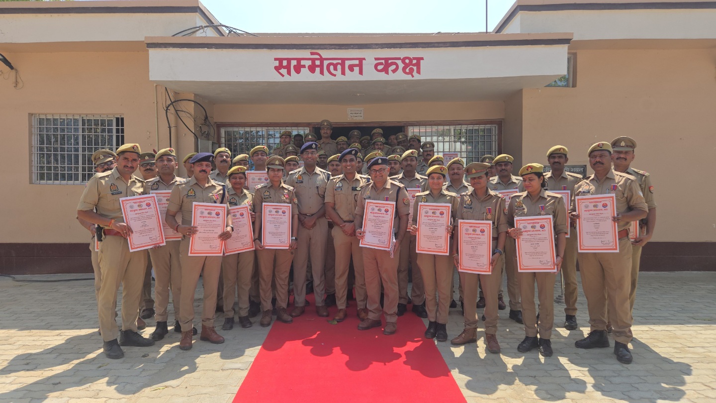 गौरव श्रीवास्तव/अमन गुप्ता,आजमगढ़। महाकुंभ 2025 के सफल आयोजन के बाद जनपद आजमगढ़ में पुलिस अधिकारियों और कर्मचारियों को सम्मानित किया गया। उत्तर प्रदेश सरकार की घोषणा के क्रम में महाकुंभ ड्यूटी में उत्कृष्ट योगदान देने वाले कुल 1042 पुलिस अधिकारी एवं कर्मचारियों को महाकुंभ सेवा मेडल और प्रशस्ति पत्र प्रदान किए गए। आपको बता दे की पुलिस लाइन सभागार में आयोजित सम्मान समारोह में वरिष्ठ पुलिस अधीक्षक डॉ. अनिल कुमार ने सभी कर्मियों को सम्मानित किया। इस दौरान जनपद के विभिन्न थानों और इकाइयों में तैनात पुलिसकर्मियों की सराहना की गई, जिन्होंने महाकुंभ के दौरान अपनी जिम्मेदारियों का सफल निर्वहन किया।कार्यक्रम में अपर पुलिस अधीक्षक यातायात विवेक त्रिपाठी, प्रशिक्षाधीन आईपीएस प्रशांत राज, क्षेत्राधिकारी नगर शुभम तोदी, क्षेत्राधिकारी तारकेश्वर पाण्डेय, गौरव शर्मा एवं अजय विक्रम सिंह सहित कई अधिकारी मौजूद रहे। साथ ही अपर पुलिस अधीक्षक ग्रामीण चिराग जैन समेत बड़ी संख्या में पुलिस बल की उपस्थिति रही। समारोह के दौरान अधिकारियों ने कहा कि महाकुंभ जैसे विशाल आयोजन को सुरक्षित और व्यवस्थित रूप से संपन्न कराना पुलिस बल की बड़ी उपलब्धि है, जिसमें सभी कर्मियों की मेहनत और समर्पण सराहनीय है।