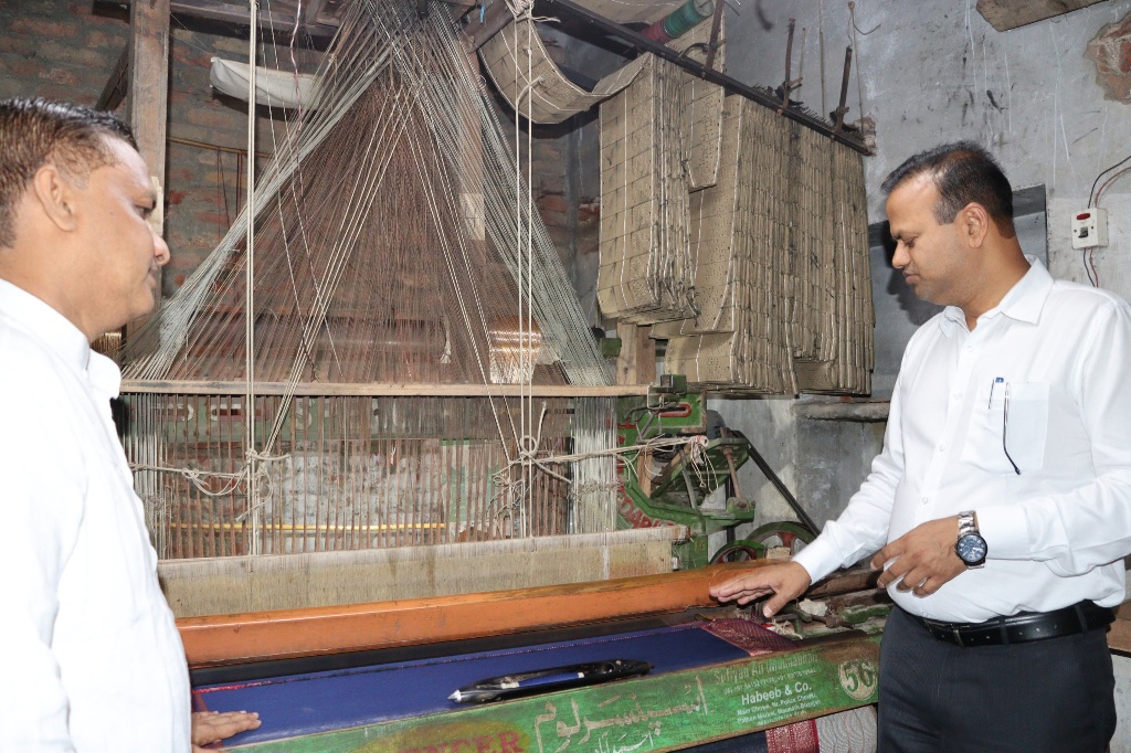 गौरव श्रीवास्तव/अमन गुप्ता,आजमगढ़। जिलाधिकारी रविन्द्र कुमार ने थाना मुबारकपुर क्षेत्रान्तर्गत मुहल्ला कटरा में बन रही साड़ियों को देखने के लिए हथकरघा व पावरलूम का आकस्मिक निरीक्षण किया। इस दौरान जिलाधिकारी ने हथकरघा व पावरलूम पर बनने वाली साड़ियों की गुणवत्ता के बारे में जानकारी लिया। उन्होने मजदूरों से उनकी मजदूरी के बारे में भी जानकारियां ली।जिलाधिकारी ने कहा कि रेशमी नगरी मुबारकपुर में बनने वाली साड़ियॉ बनारसी साड़ियों के नाम से जाना जाता है, जिसे मुबारकपुर वासियों ने आज भी जिंदा रखा है। जिलाधिकारी साड़ी व्यवसाईयों से बातचीत करते हुए रेशमी नगरी में बनी साड़ियों के कीमत, आयात व निर्यात के बारे में भी जानकारी लिया। इसके पश्चात जिलाधिकारी द्वारा मुबारकपुर थाने के बगल में बने बुनकर विपणन केंद्र का निरीक्षण किया गया। निरीक्षण के दौरान मौके पर सभी 133 दुकाने बंद मिली, जिसको लेकर के जिलाधिकारी ने काफी नाराजगी व्यक्त। उन्होने कहा कि जिस उद्देश्य के लिए यह विपणन केंद्र बना हुआ है, उसका सदुपयोग नहीं हो रहा है, जिसके लिए टीम गठित करते हुए प्रमुख सचिव हथकरघा विभाग को पत्र लिखकर इसकी जांच कराकर कार्रवाई की जाएगी और पात्र व्यक्तियों को विपणन केंद्र में बनी दुकानें आवंटित कराई जाएंगी। इस अवसर पर अपर पुलिस अधीक्षक नगर मधुबन कुमार सिंह, थानाध्यक्ष मुबारकपुर एवं अन्य संबंधित उपस्थित रहे।