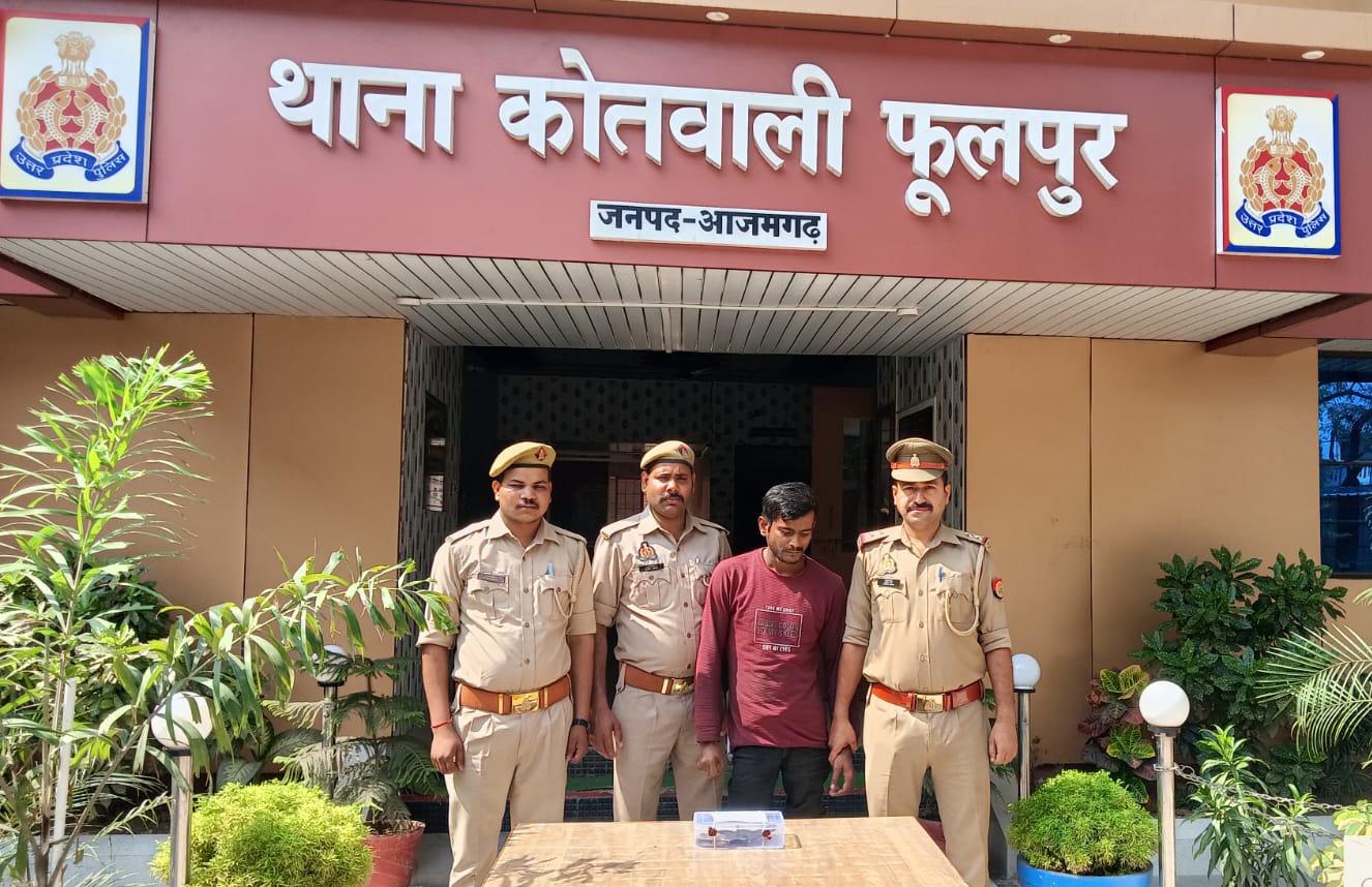 गौरव श्रीवास्तव/अमन गुप्ता,आजमगढ़ के फूलपुर थाना पुलिस को बड़ी सफलता मिली है। ₹25,000 के इनामी और गैंगस्टर एक्ट में वांछित शातिर अपराधी सलीम को पुलिस ने देर रात मुठभेड़ जैसी घेराबंदी में गिरफ्तार कर लिया। आपको बता दे की 29 मार्च की रात पुलिस टीम किठावें नहर पुलिया के पास चेकिंग कर रही थी। मुखबिर की सूचना पर घेराबंदी कर आरोपी को करीब रात 12:17 बजे दबोच लिया गया। अभियुक्त के पास से अवैध तमंचा (.315 बोर) 1 जिंदा कारतूस बरामद आरोपी गैंग के साथ मिलकर गोवध जैसे संगठित अपराध में सक्रिय था विरोध करने वालों को धमकाकर फरार हो जाता था अपनी सुरक्षा के लिए अवैध हथियार रखता था। आरोपी पर पहले से ही गोवध निवारण अधिनियम, पशु क्रूरता अधिनियम, आर्म्स एक्ट और गैंगस्टर एक्ट के तहत कई मुकदमे दर्ज हैं।