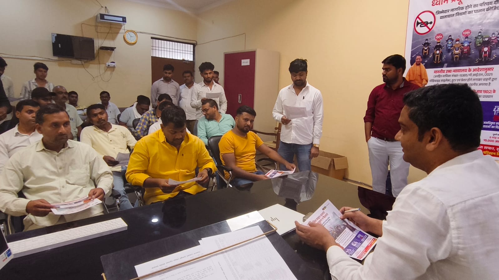 गौरव श्रीवास्तव/अमन गुप्ता,आजमगढ़। कार्यालय सहायक सम्भागीय परिवहन अधिकारी, आजमगढ़ में मोटर गैराज मालिकों, मैकेनिकों एवं वाहन डीलरों की एक महत्वपूर्ण बैठक सहायक सम्भागीय परिवहन अधिकारी (प्रवर्तन) अतुल कुमार यादव की अध्यक्षता में आयोजित की गई।बैठक के दौरान सहायक सम्भागीय परिवहन अधिकारी (प्रवर्तन) ने उपस्थित सभी गैराज संचालकों एवं मैकेनिकों को प्रेशर हॉर्न तथा मॉडिफाइड साइलेंसर का उपयोग कर ध्वनि प्रदूषण फैलाने वाले वाहनों से होने वाले दुष्परिणामों के प्रति विस्तृत रूप से जागरूक किया। उन्होंने बताया कि ऐसे कृत्य न केवल आमजन के स्वास्थ्य पर प्रतिकूल प्रभाव डालते हैं, बल्कि यातायात व्यवस्था को भी बाधित करते हैं।उन्होंने स्पष्ट किया कि मोटरयान अधिनियम-1988 के तहत प्रेशर हॉर्न एवं अवैध रूप से मॉडिफाइड साइलेंसर लगाने पर संबंधित गैराज मालिक पर रुपये एक लाख का जुर्माना लगाया जा सकता है। इसके अतिरिक्त वाहन स्वामी पर रुपये दस हजार का जुर्माना एवं तीन माह तक के कारावास का प्रावधान भी किया गया है।बैठक में यह भी अवगत कराया गया कि ध्वनि प्रदूषण करने वाले वाहनों के विरुद्ध कड़ी कार्रवाई करते हुए ऐसे वाहनों का पंजीकरण (रजिस्ट्रेशन) तथा संबंधित चालक का ड्राइविंग लाइसेंस भी निलम्बित किया जाएगा।सहायक सम्भागीय परिवहन अधिकारी (प्रवर्तन) ने सभी गैराज संचालकों, मैकेनिकों एवं डीलरों से अपील की कि वे नियमों का कड़ाई से पालन करें तथा किसी भी प्रकार के अवैध संशोधन (मॉडिफिकेशन) से बचें। उन्होंने कहा कि नियमों का उल्लंघन करने वालों के विरुद्ध सख्त प्रवर्तन कार्रवाई सुनिश्चित की जाएगी।बैठक में सभी संबंधित पक्षों द्वारा नियमों के अनुपालन का आश्वासन दिया गया तथा ध्वनि प्रदूषण मुक्त वातावरण बनाने हेतु सहयोग करने की प्रतिबद्धता व्यक्त की गई।