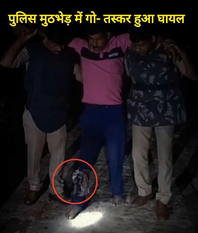 गौरव श्रीवास्तव,आजमगढ़। जनपद जिले के थाना गंभीरपुर क्षेत्र में बीती रात पुलिस और पशु तस्कर के बीच मुठभेड़ हो गई। जवाबी कार्रवाई में तस्कर के पैर में गोली लग गई। घायल आरोपी को जिला अस्पताल रेफर किया गया। मौके से अवैध तमंचा, बाइक और नगदी बरामद हुई है। आपको बता दे की थाना गंभीरपुर पुलिस टीम को देर रात सूचना मिली कि एक अपराधी मोटरसाइकिल से विषहम तिराहे पर खड़ा होकर किसी वारदात की फिराक में है और उसके पास अवैध तमंचा है। सूचना पर थानाध्यक्ष अखिलेश कुमार मय पुलिस बल मौके पर पहुँचे। पुलिस को देखकर अपराधी ने अपने को घिरा देख जान से मारने की नीयत से फायरिंग शुरू कर दी।